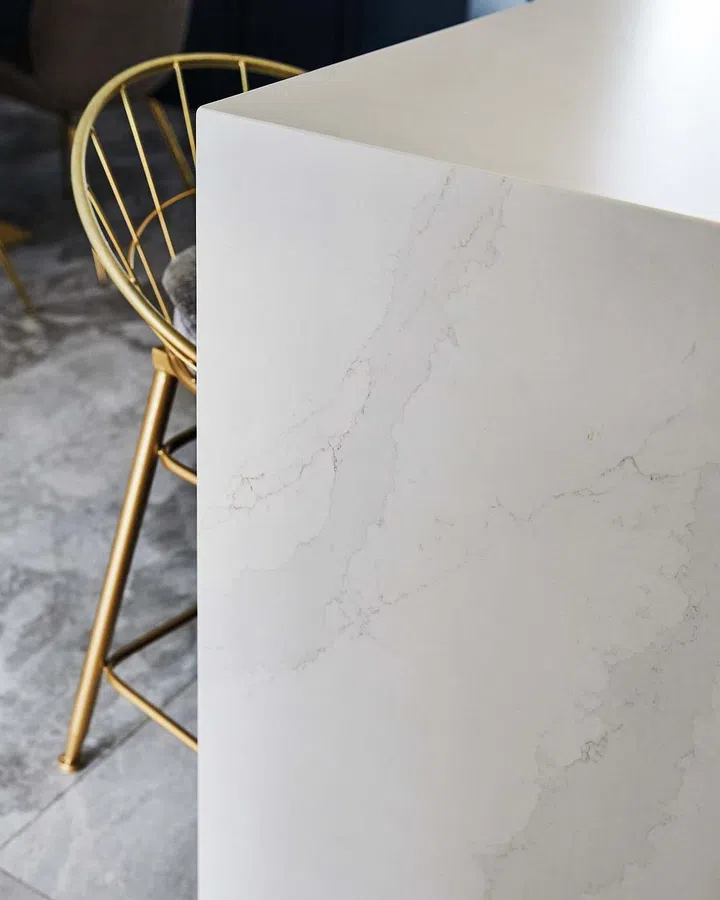 The counters features an elegant Calacatta Gold quartz surface from Silestone’s Eternal Collection, while some of the home accessories, including the abstract painting that dominates the dining room, were purchased from Taobao.