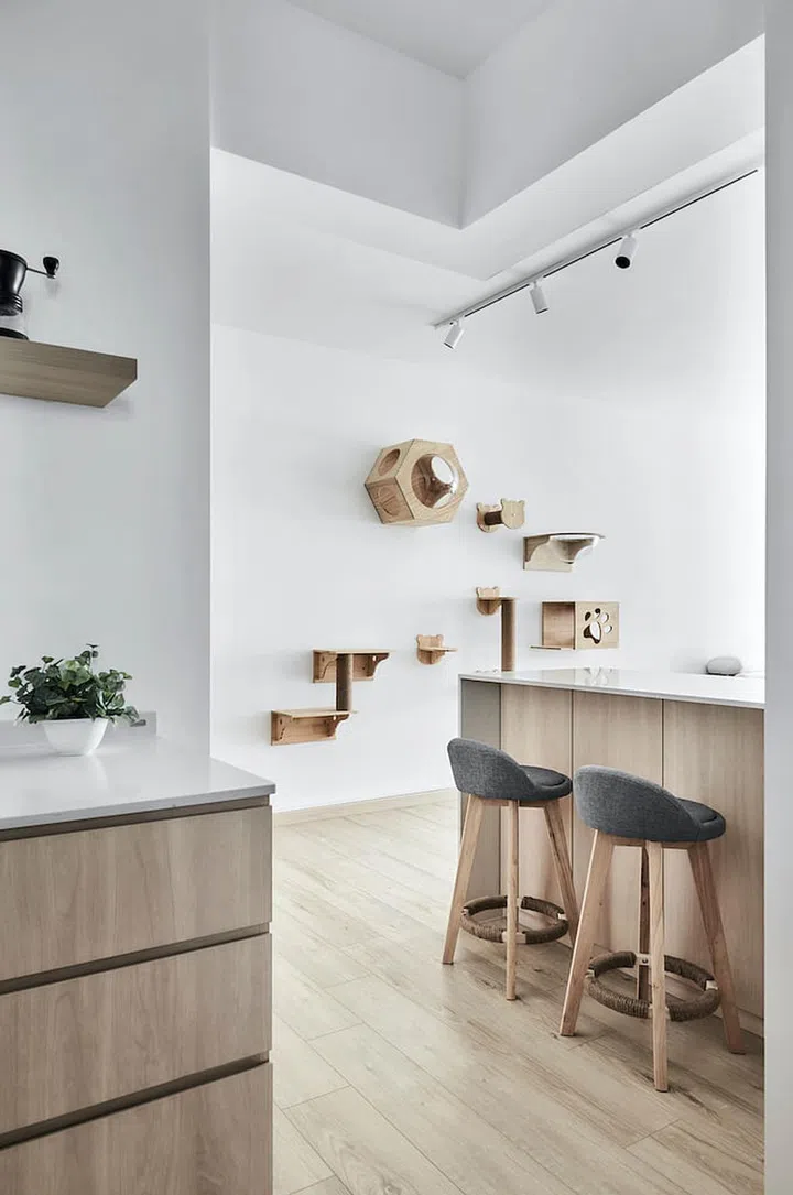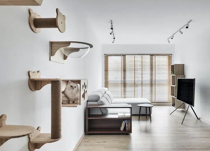 Every corner of this HDB apartment was designed with the homeowners' feline companions in mind.