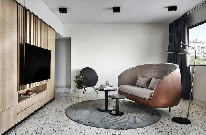 House Tour: A tasteful, contemporary 4-room HDB resale flat with an 80's terrazzo floor