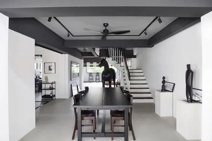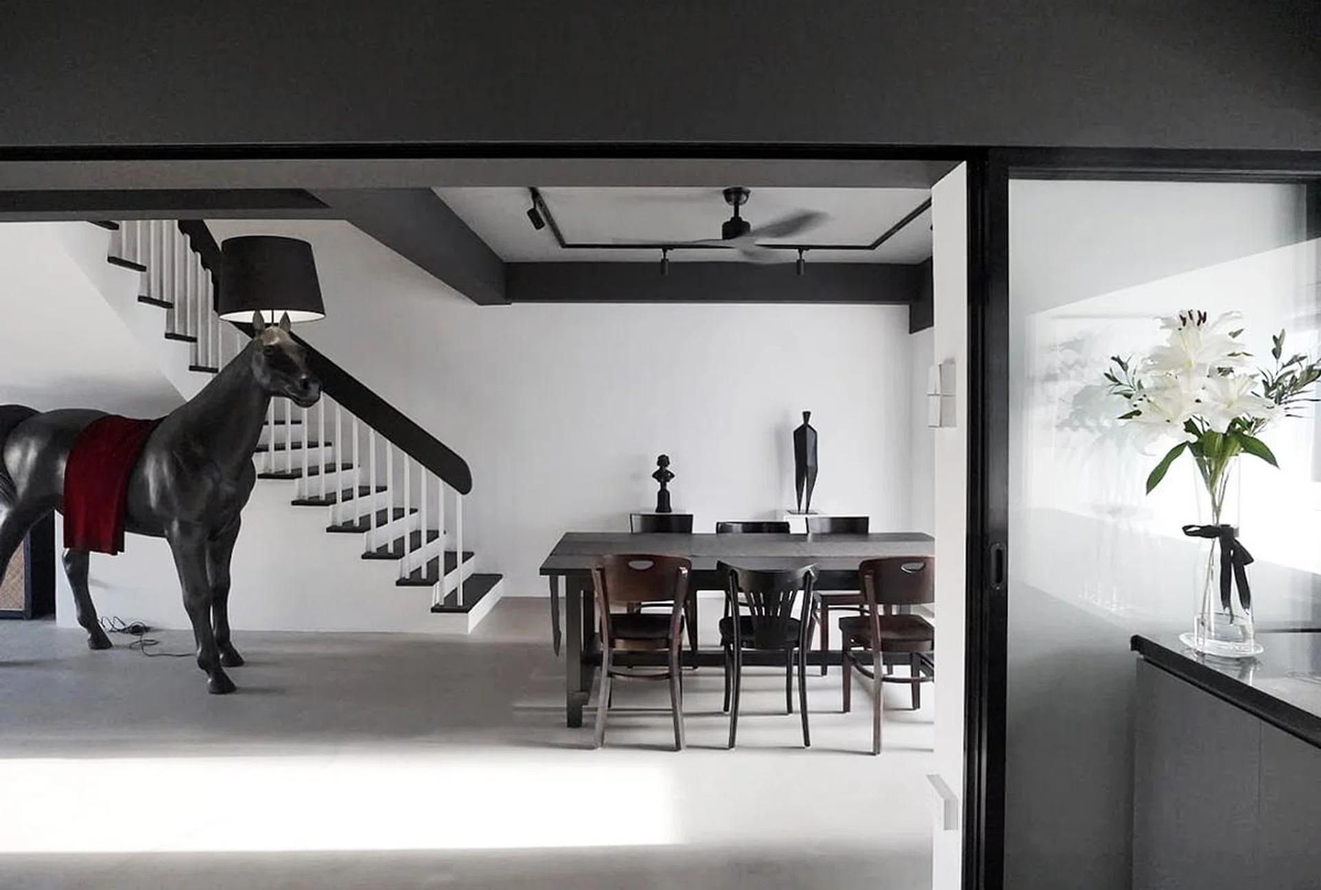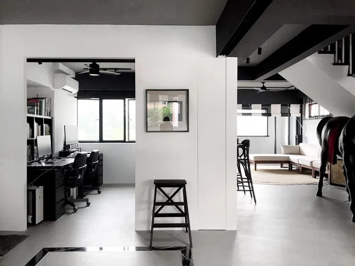 House Tour: An stilt-house-inspired executive maisonette with a sleek monochrome palette