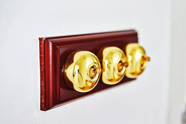 These brass-domed switches, known as dolly switches, are brand new but maintain that vintage look.