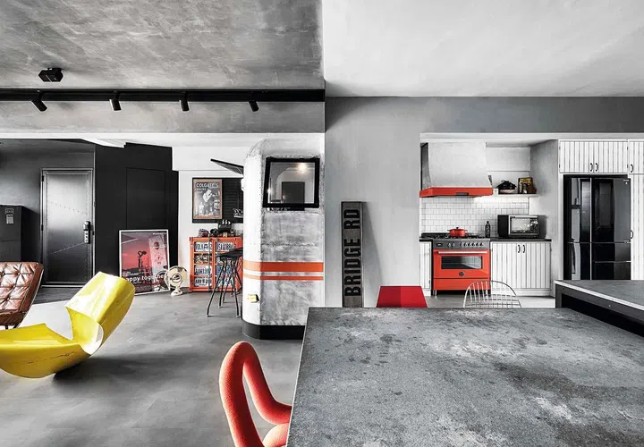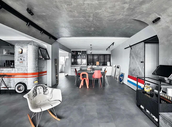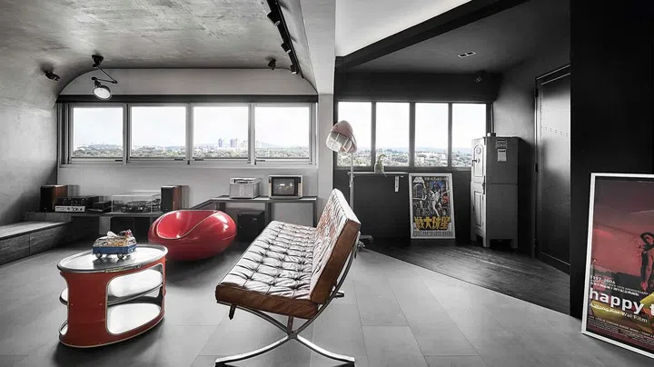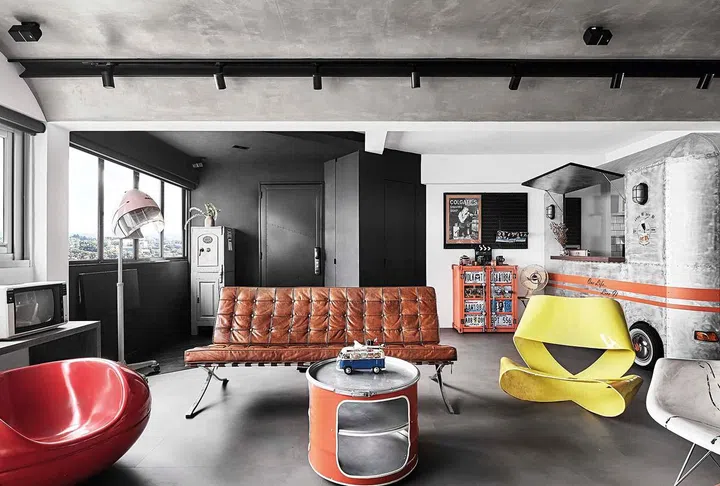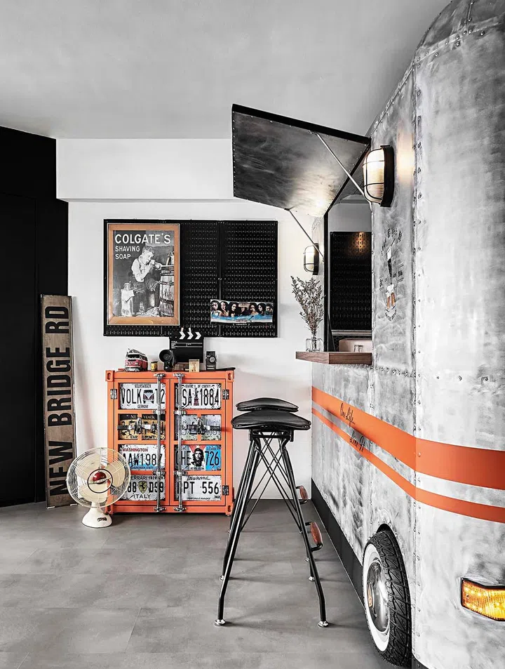 This five-room resale flat in Bukit Merah is a playful yet functional homage to the world of vintage cinema, garage grunge and caravan living.
