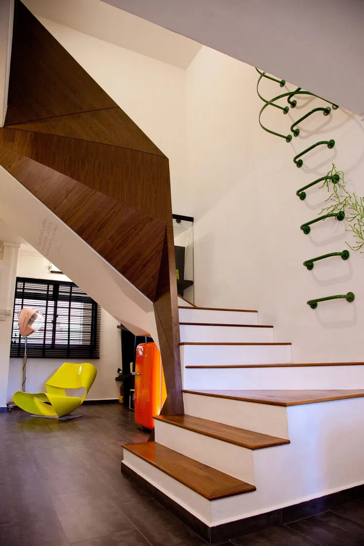 Their collaboration with Kelvin was a creative triumph. Inspired by origami, their home landed the cover story of Home & Decor in May 2011, filling pages after pages with exciting interior shots of design features like a sculptural staircase, a ladder that serves as an art installation and a lego bookcase.