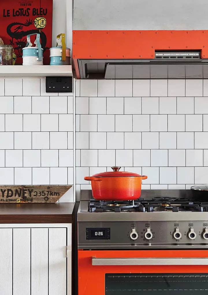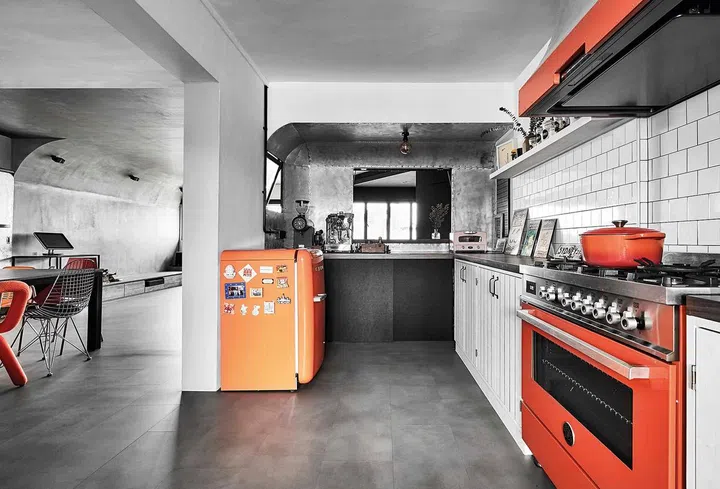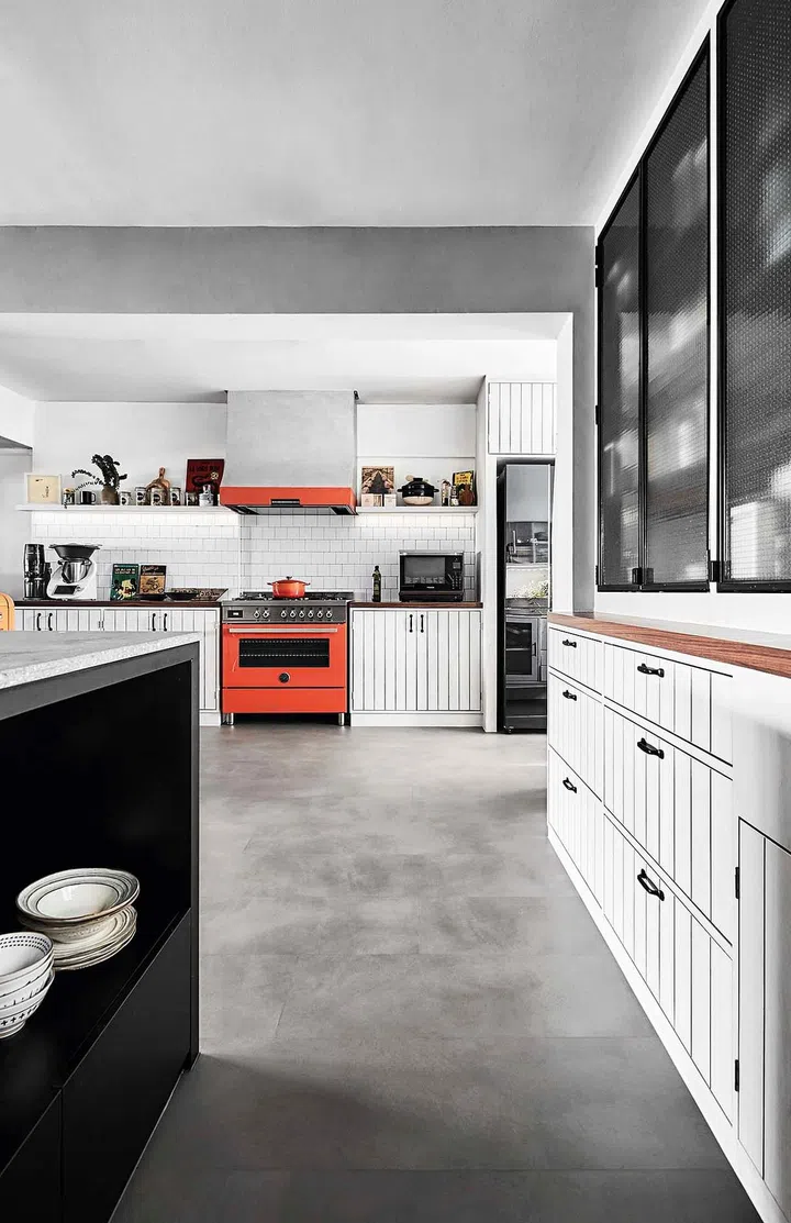 Orange is Foong Hwee’s favourite colour. In fact, the vintage-inspired orange stove in the kitchen is the first new item she acquired for the home, around which the design of the kitchen was centred.