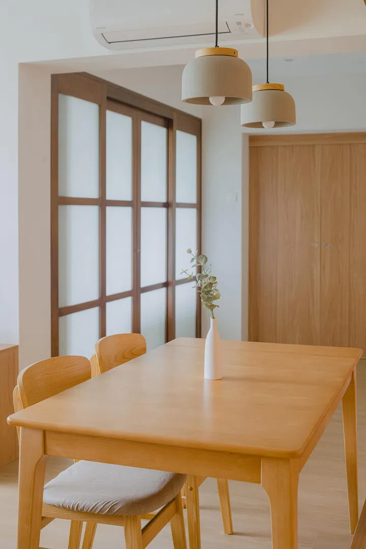 Traditional Japanese architectural elements like shoji screens and fusama sliding doors were used together with modern Scandinavian touches in this complete reconfiguration of a HDB flat. And it was all done with the homeowners overseas.