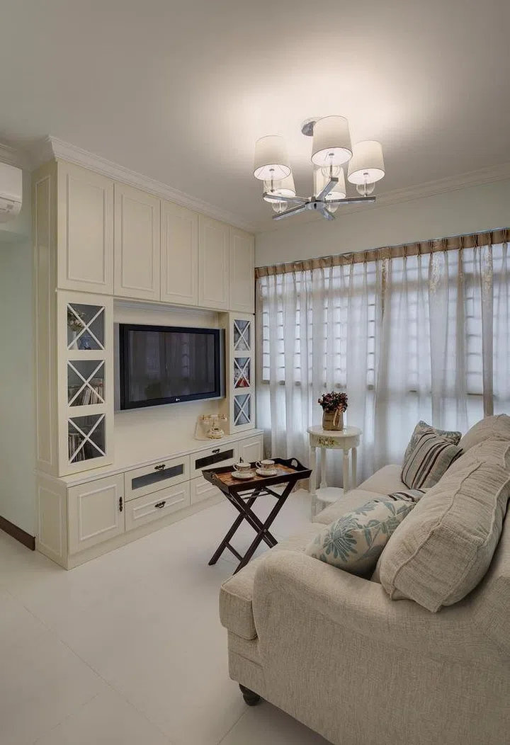 House Tour: Four-room HDB flat in Punggol with soft pastels, floral motifs and white wood cabinetry