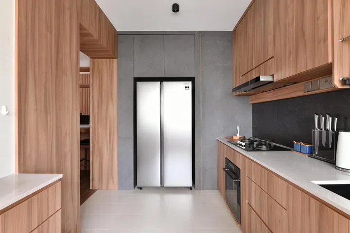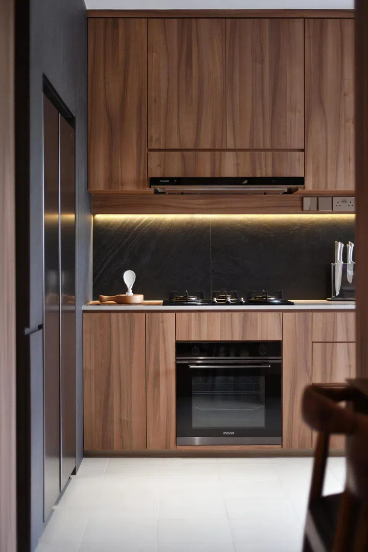 As space was limited, careful planning of the spatial flow and storage was a must. In the kitchen, Philip installed a grey feature cabinet that provides more room for storage of kitchen appliances.