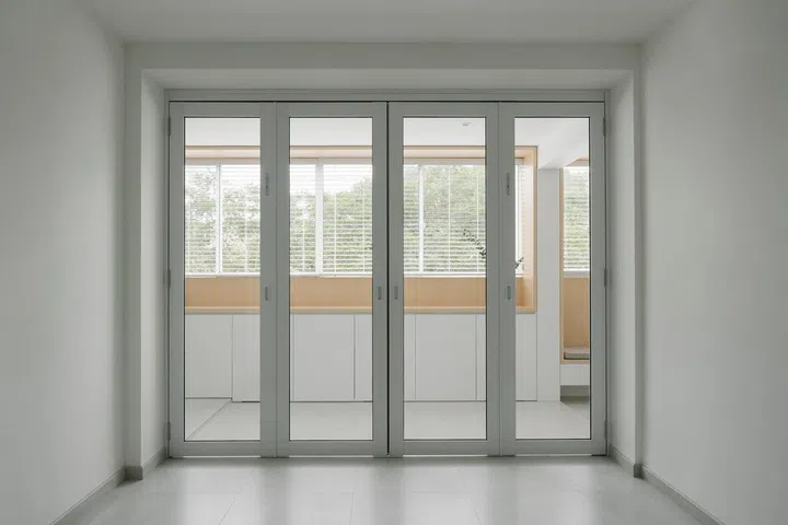 A bi-fold glass wall divider helps to let light through into the middle of the home. When the family has friends and relatives over, this can be opened up for more space.