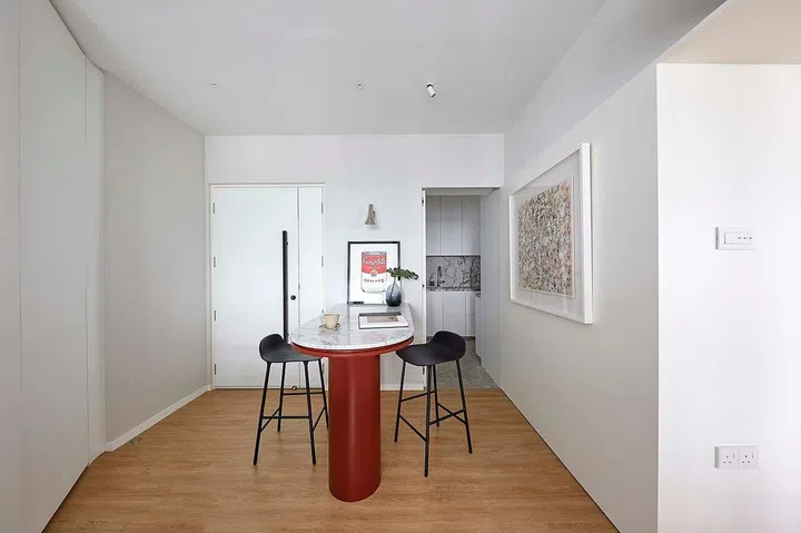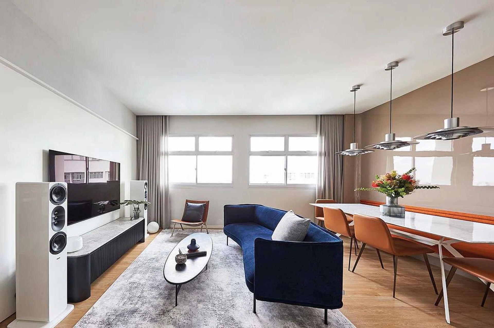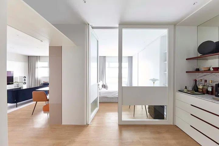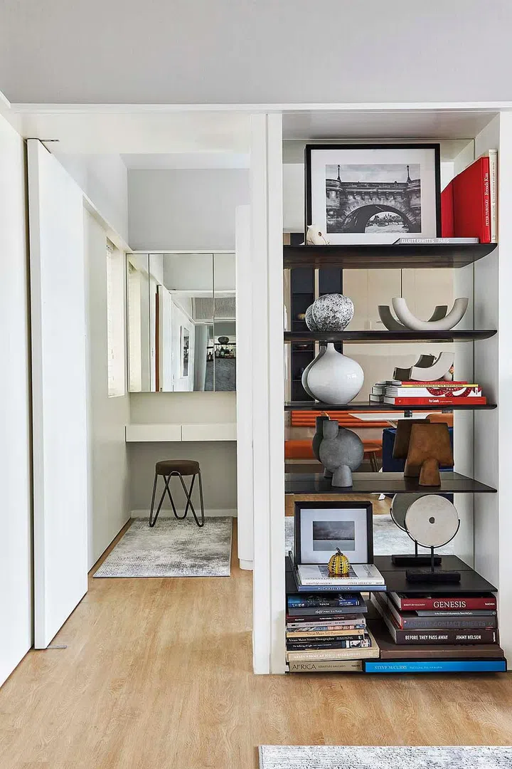 Home to a couple in their thirties who live together with a parent, the flat is a study in sleek lines and subtle curves. The couple engaged Molina Hun of Parenthesis Studio for the design and renovation after searching for a designer who shared a similar aesthetic preference for timeless, contemporary design. "We're very lucky to have Molina as our designer," says the wife.