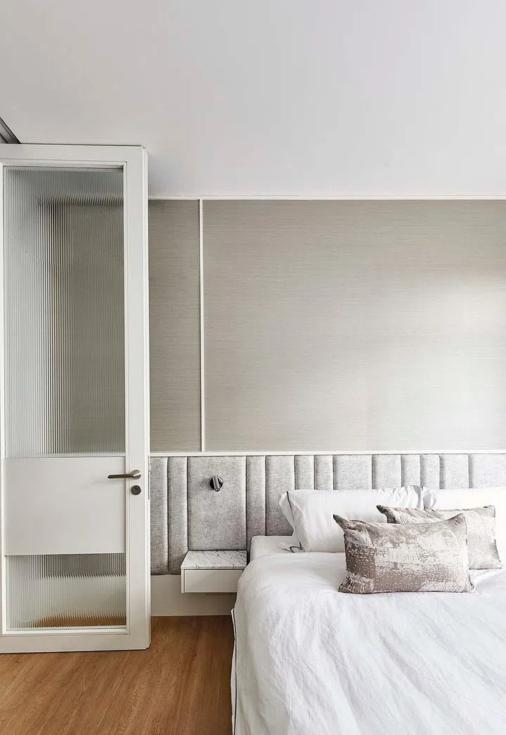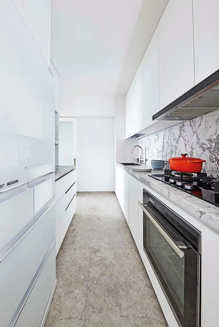 To balance out the strong colour palette, Molina decided on a subtle wash of white as the main canvas for the apartment, but took care to add detailing so it would not be too plain. These include fluted panelling for the custom TV console and air-conditioner covers, textured wallpaper, as well as custom-made headboards and divans in the bedrooms. “We wanted to keep it sleek but still add interest and contrast,” says Molina.