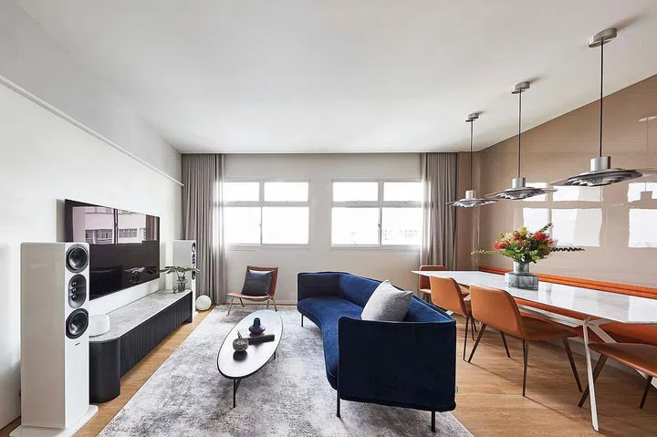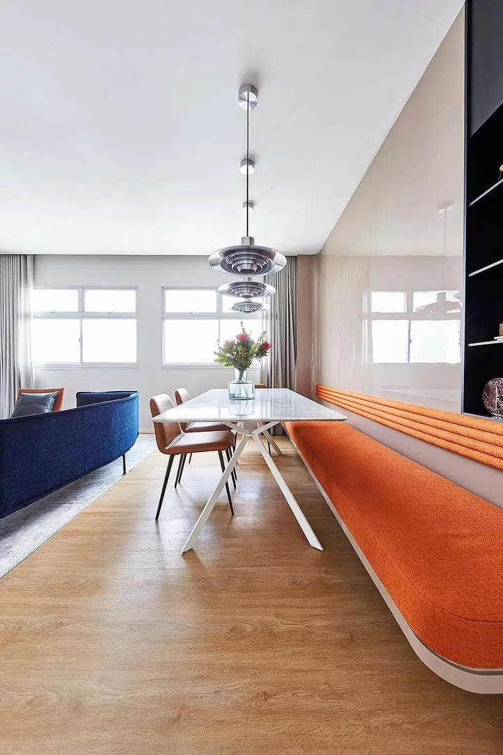 One of the priorities in the design brief was to have a large, bright space for entertaining friends. A dramatic overhaul was needed, so Molina reconfigured the space entirely, taking out the two common bedrooms and transforming them into a large communal area for living and dining purposes.