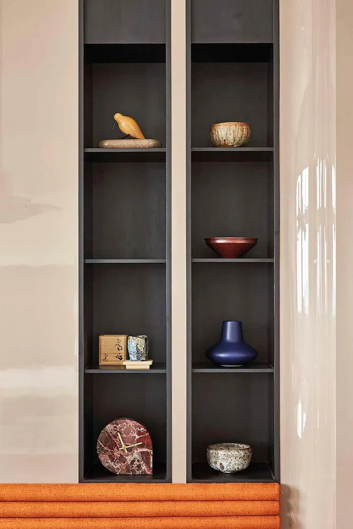 One of their shared interests is collecting pottery on their travels, so having sufficient display shelves was a must. Their collection comprises one-of-a-kind shigaraki cups from Japan, cha wan (tea cup) pieces from a local potter they had befriended, and other interesting bits they had amassed over the years.