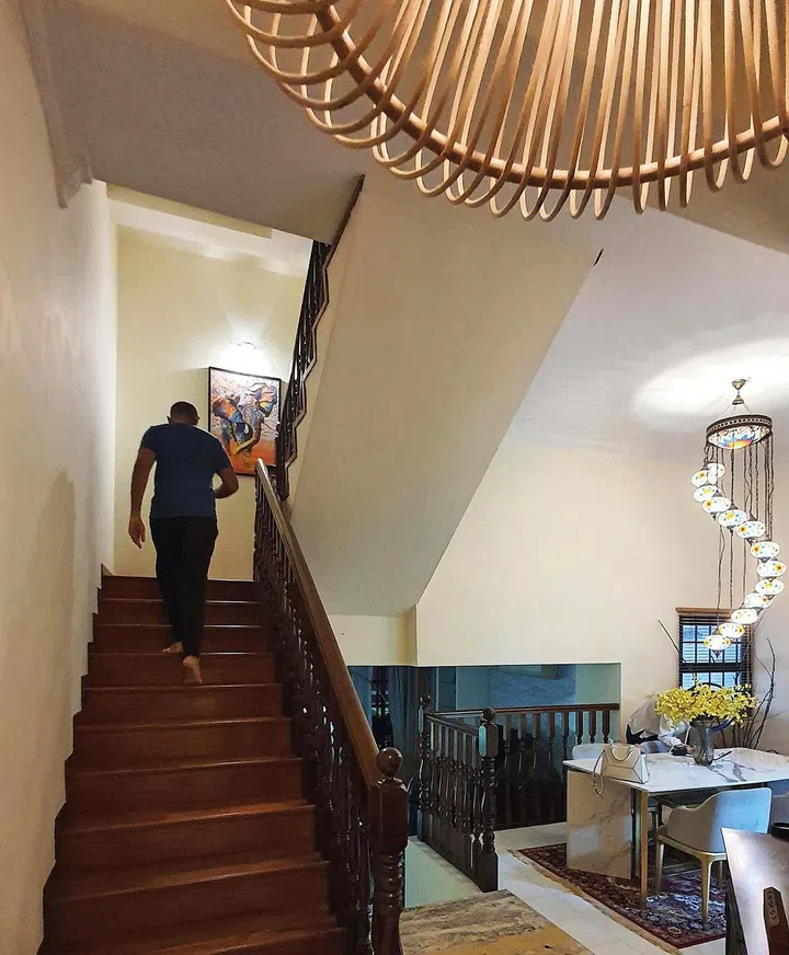 Before: The former bulky wooden balustrades along the staircase were replaced with metallic wires, allowing light to flow in.