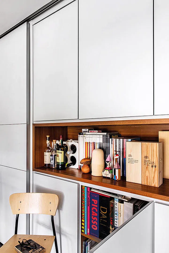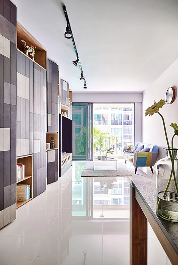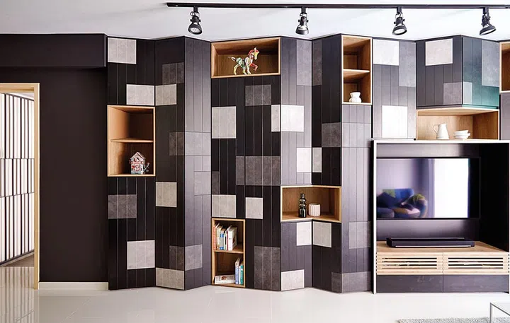 2. Three-bedroom condominium in Sengkang with a feature wall made of storage cabinets