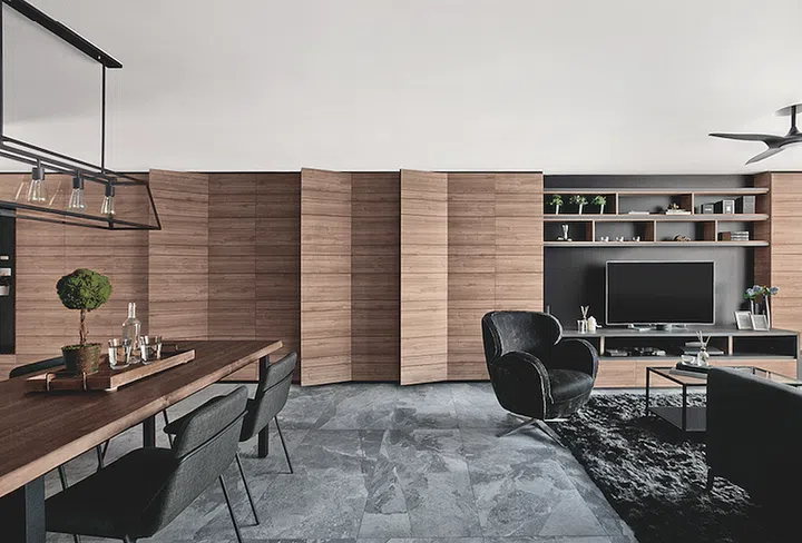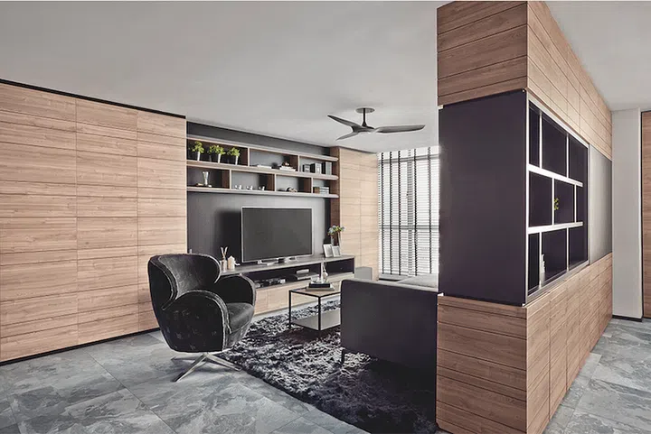 “At the same time, it also gives the impression of a ‘roomier’ living area.” The feature wall also serves as an ample storage space.