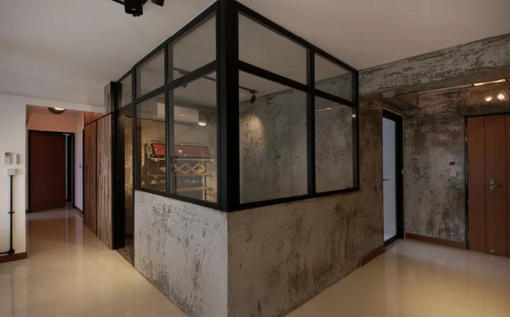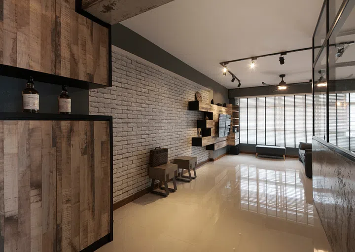 The homeowners – a couple and their two daughters – of this HDB BTO in Punggol wanted a trendy and personalised look for their home, so interior firm Starry Homestead proposed an industrial-style design that includes several display shelves and niches.