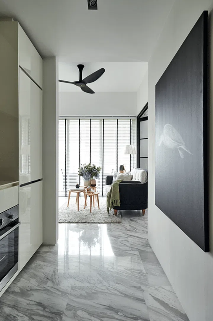 Her 441sqf, one-bedder condominium apartment is indeed a squeeze, but homeowner and sports enthusiast Kate Tan isn’t complaining. Her cosy apartment exudes a chic hotel-room atmosphere, she wakes up on a queen-size bed (yes, it fits!), and there’s enough storage space for her bulky sports gear. “I told Lawrence of interior design firm Akihaus that I wanted a casual yet chic home; something I will not grow tired of, and that matches my personality,” says Kate.