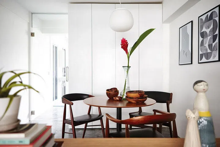 Kuan Eng had one of the bedrooms removed and its walls knocked down to open up the space. It is now a dining area where he entertain friends. The original wardrobe now stands as a storage space. The 3-room HDB flat feels spacious and airy.