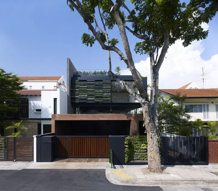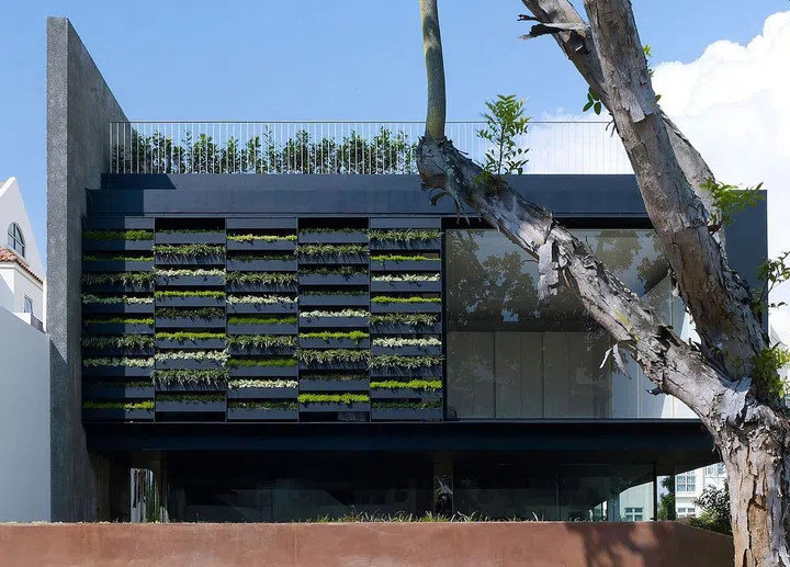 As a result, the façade of the home as well as it’s fence is decorated with green walls.