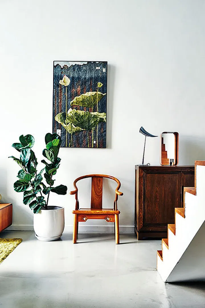 The home has character and warmth, thanks to wood tones and vintage furniture the couple have collected over the years.