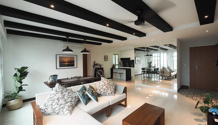 House Tour: $60,000 renovation for a Clementi five-room HDB BTO home with a monochromatic palette