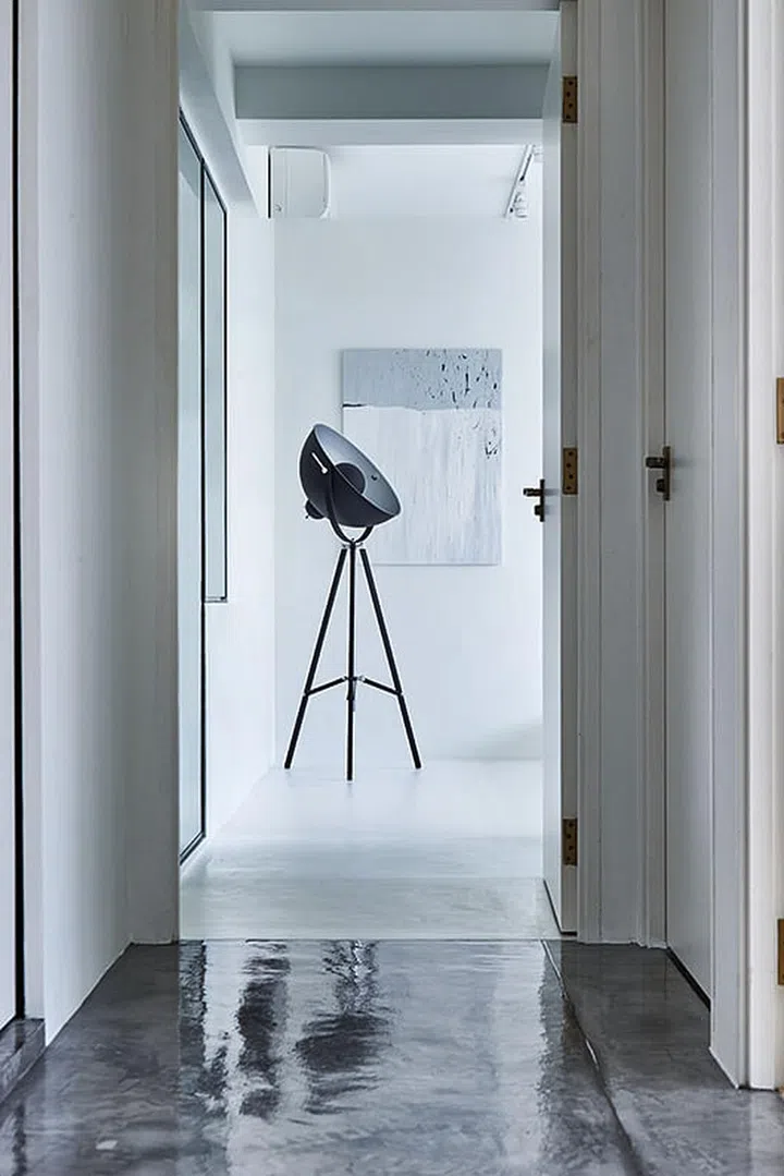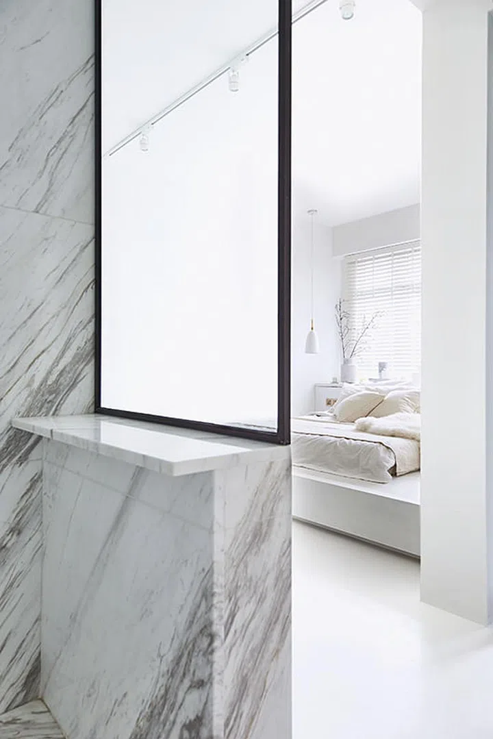 He designed the flat with streamlined, linear features, and juxtaposed materials such as concrete and marble, to achieve the industrial-luxe aesthetic that defines this remarkable Kallang BTO transformation.