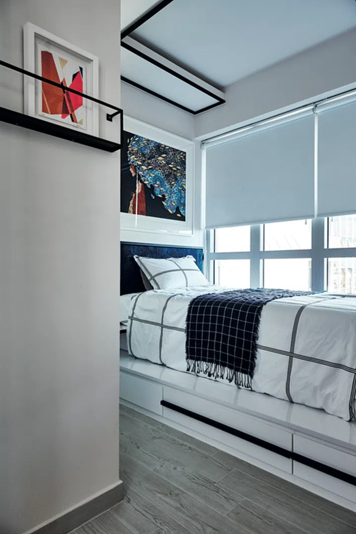 The starting point was a colourful print by British artist Eelus, which the homeowner Ms Tong spotted among the design paraphernalia at her interior designer’s office. This was how the street-inspired design of her apartment came about, explains Stan Tham of KNQ Associates. “For this look, I combined humble materials, colourful artwork and whimsical objects,” he adds. This includes brick textures, paver tiles, and metal hoarding as material finishes, as well as works by pop and street artists such as Peter Blake and Miss Bugs to decorate the walls. The renovation cost $85,000.