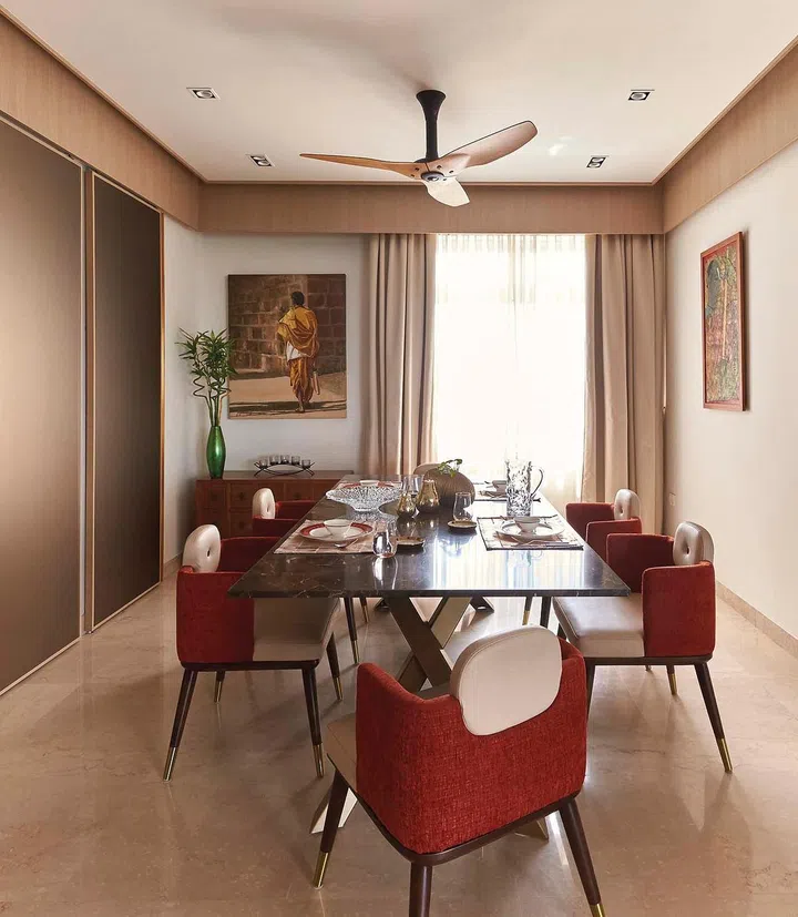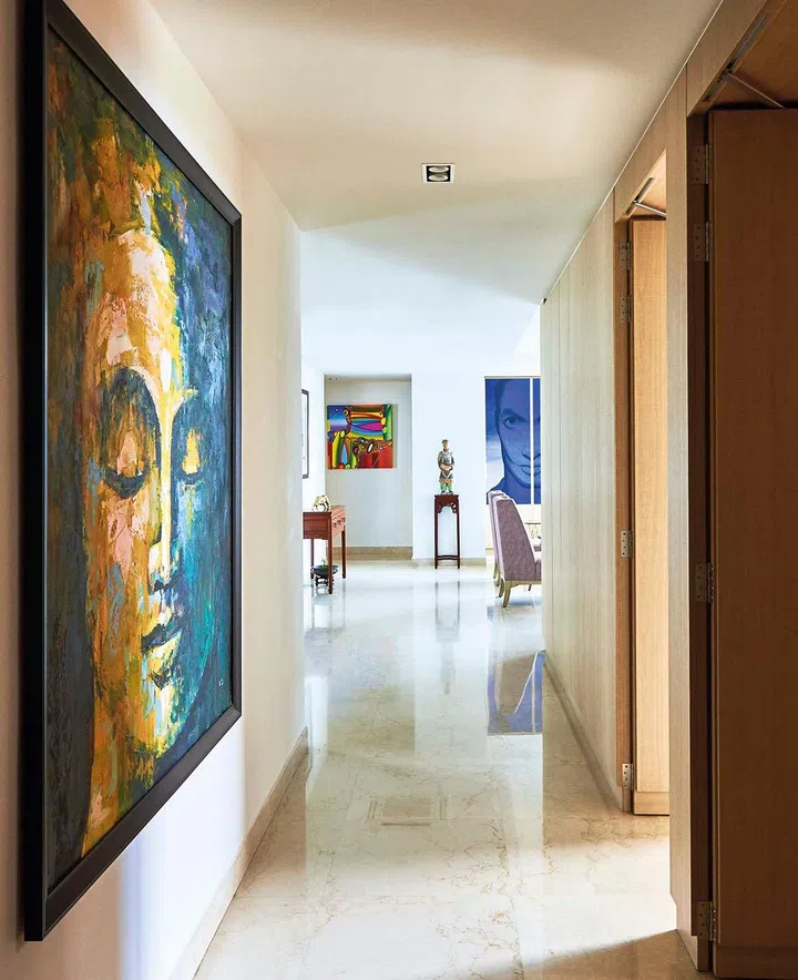 Stepping inside the home feels like coming inside a luxury hotel suite – there is an art-filled foyer, a wide corridor, liberal use of marble surfaces, and everything is so neat and clean-lined.