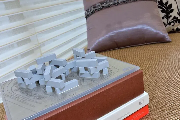 The homeowner managed to procure a miniature set of the Interlace building, allowing guests to appreciate the complex architecture of the entire development.