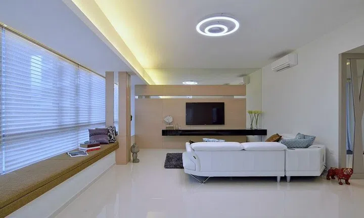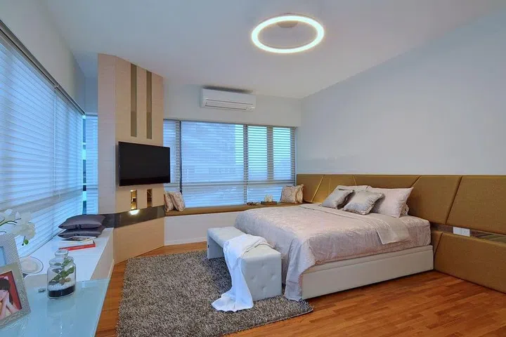The homeowner of this unit engaged established studio KNQ Associates to tackle the bulky columns present within the unit. The design team achieved the feat by integrating the columns with the bay windows, incoporating their looks seamlessly with the rest of the home.