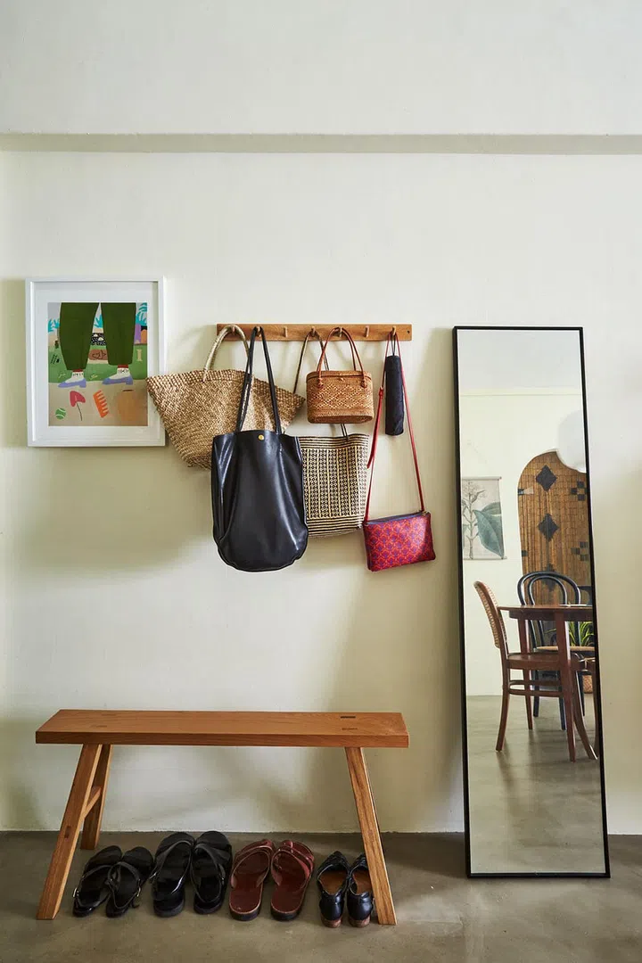 “Our logic with storage was, the more storage space you have, the more you will buy and stash inside them, and the accumulation of stuff goes unnoticed,” says Marvin. “So by keeping everything on display it has influenced us to think our purchases very carefully and to get only the things we absolutely need.”