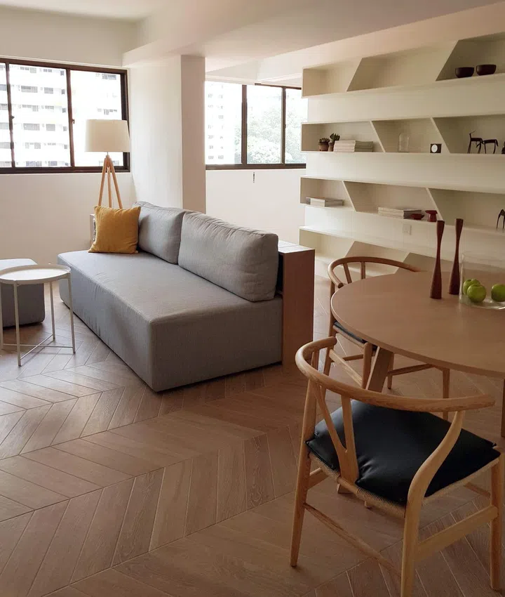 After living in this four-room HDB flat in Tanjong Pagar for 19 years, the homeowners decided it was time for a revamp. They entrusted Jay Ang of J + A — the same interior designer they worked with years ago — to give their home a brand new look.
