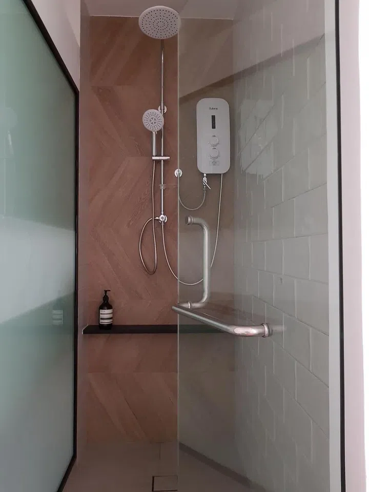 "A bigger shower compartment and vanity counter was also designed for both mother and daughter," shares Jay.