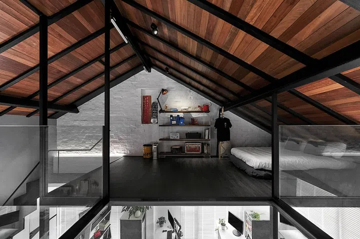 The vintage architecture and pitched roof of this compact corner terrace house built in the 1950s sealed the deal. Drawn by the charm of its architecture, designer Kelvin Teo retained its structure.
