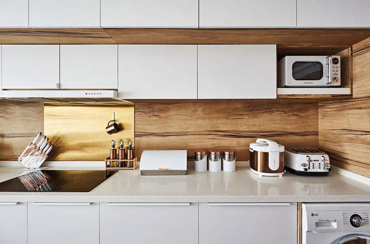 All the appliances, table wares and accessories have rose gold or brass finish, which Calvin painstakingly sourced online from all over the world.