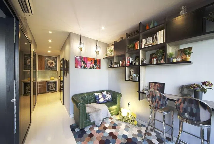 For her home, designer Kelvin Teo of Space Sense combined the popular retro, vintage, industrial and Scandinavian styles — all in a compact 1+1 bedroom condo unit!
