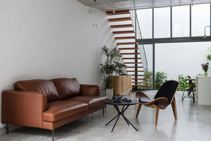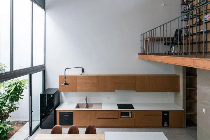 To address the design brief, architects H.a. Workshop decided to build an open-concept home with a terrace structure for each level, so each receded floor overlooks the main area below. The house was designed around the kitchen, which was kept as the central spot.