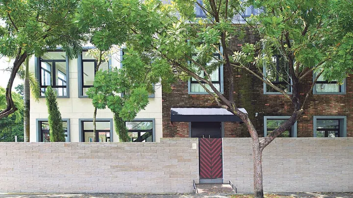 Keen-eyed visitors would notice that while the two-storey bungalow with an attic is one big structure, the facade has been clad in three different materials - limestone, brick and timber - typically found in Brooklyn townhouses. To match the facade, the windows were also designed with proportions typically found in Brooklyn townhouses.
