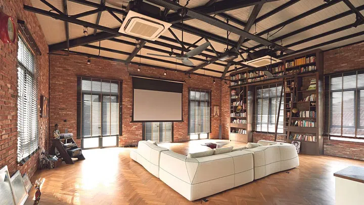 Their attic, which has been converted into an entertainment area, features black exposed structural beams and red brick surfaces to accentuate the Brooklyn townhouse experience. The family hangs out here at least once a week to watch movies or enjoy desserts and after-dinner drinks with guests.