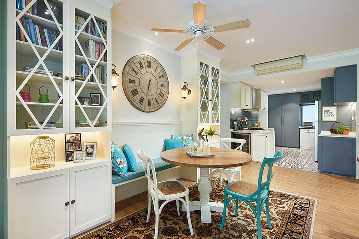The homeowners take a liking towards open-concept spaces, so the Black n White Haus design team granted their wishes. Home accessories like the traditional-style carpet and bright blue cushions, were used to tie the area together.