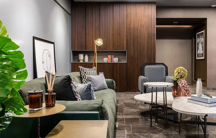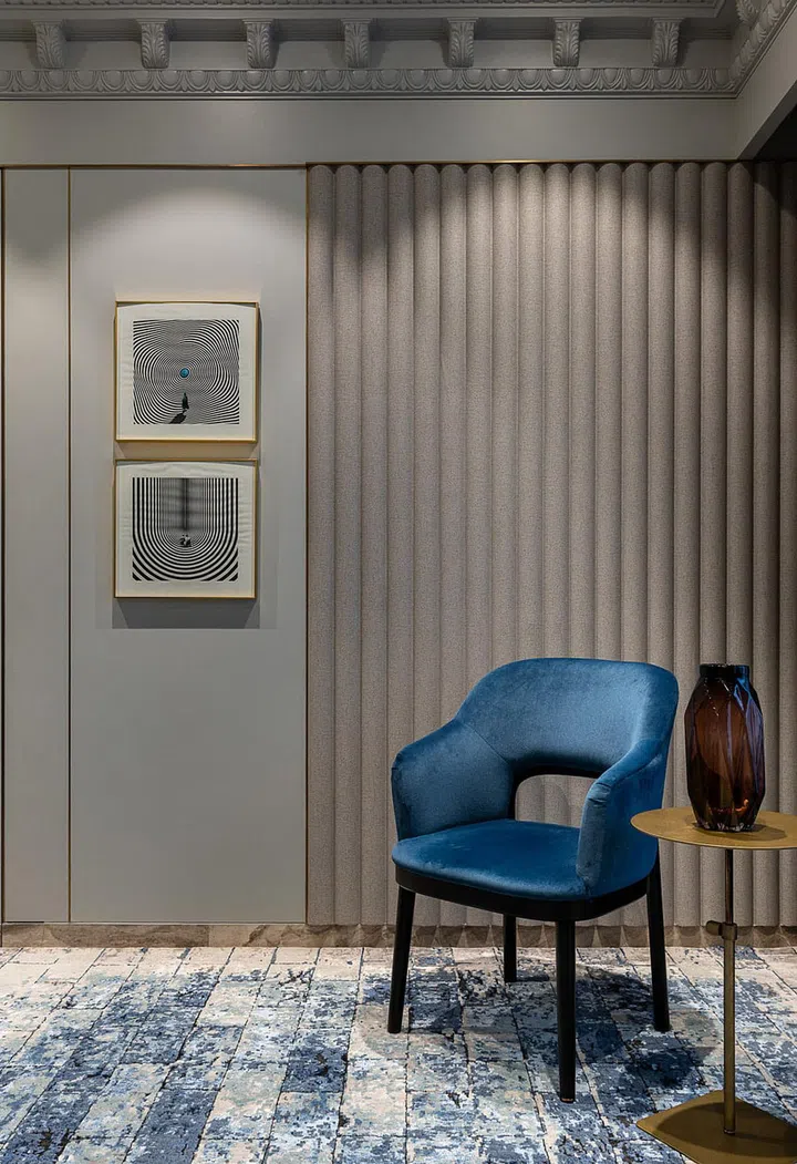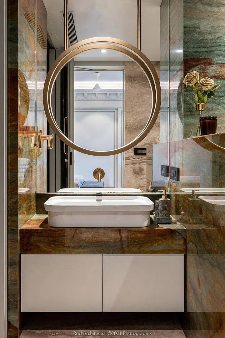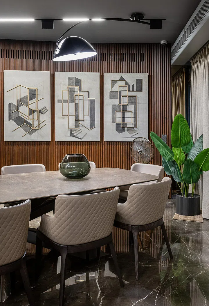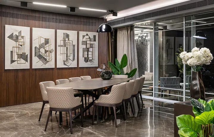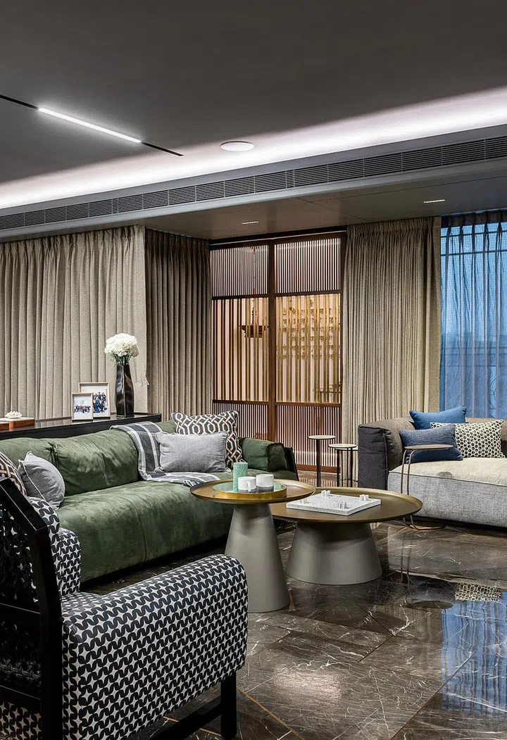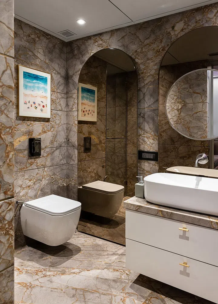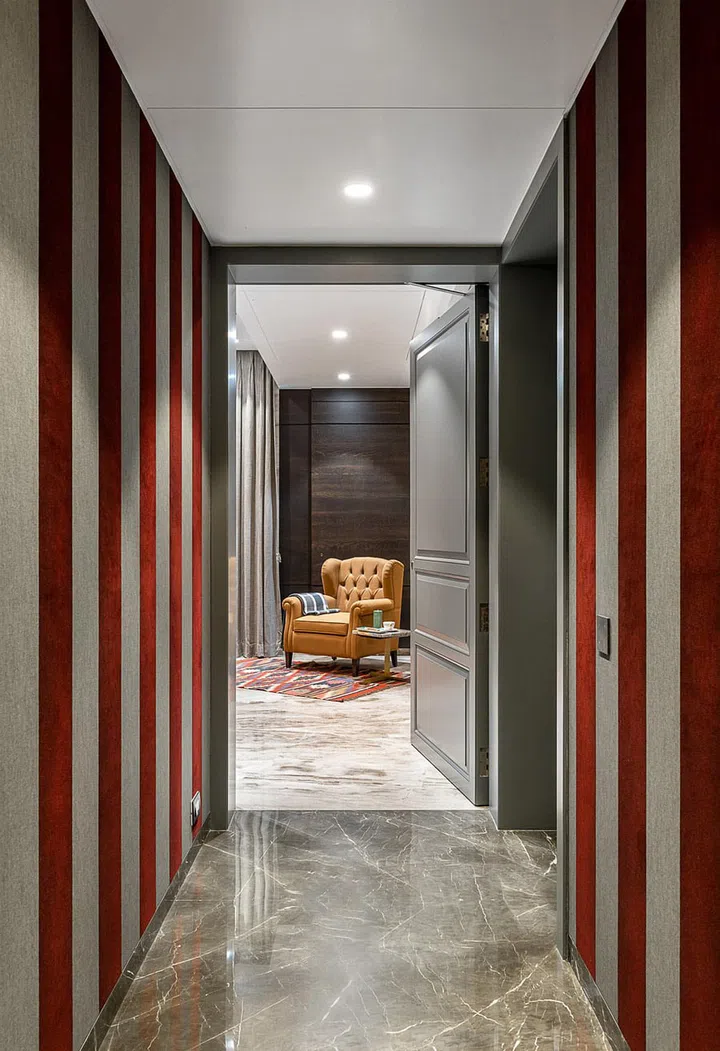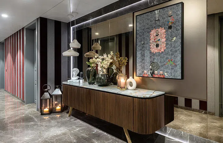 "Meanwhile, the common spaces like corridors, vestibules, dining, and the living area follow a singular design narrative," describes Ekta.