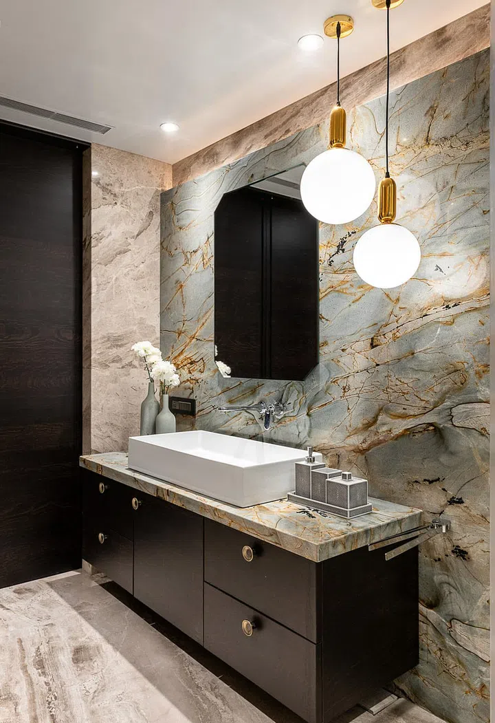 "We’ve used a lot of limestone and marble along with wallpapers and export quality granite," says Ekta.