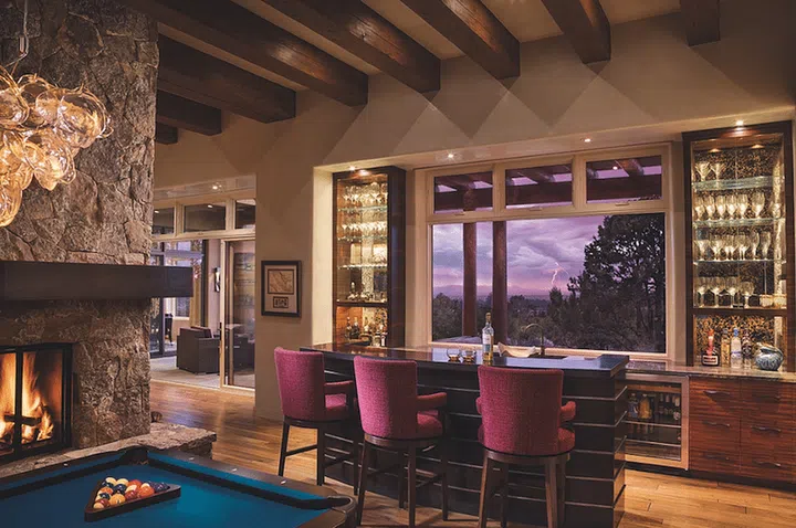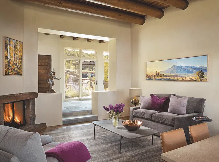 Set in the historic district of New Mexico’s capital city, the completed building is a magnificent one-storey, three-bedroom adobe spanning 8,000sqf, with sweeping vistas of Santa Fe’s natural landscape. As the homeowner is fond of throwing parties for extended family and friends, which see up to 100 guests at a time, one requirement was to make the outdoor space an extension of the interiors, so that guests can move around freely on the grounds.
