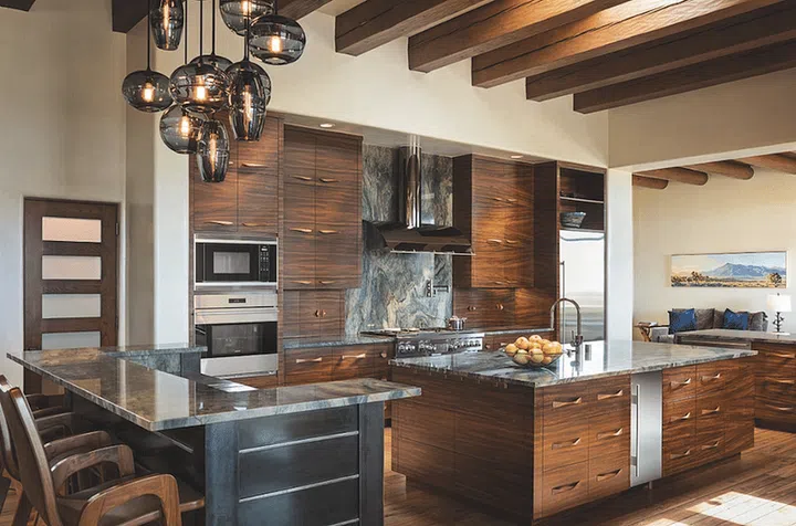 The kitchen, in particular, is special to husband Scott, a geologist with a passion for stones, as the countertops are made from a rare stone.
