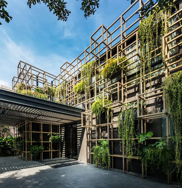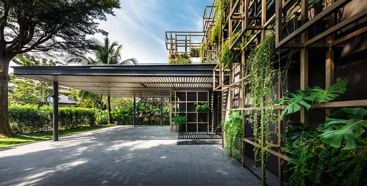 The addition of a green facade as part of an A&A project breathes new life into an existing Sentosa Cove home.