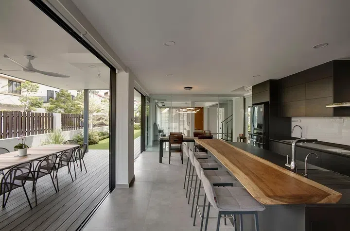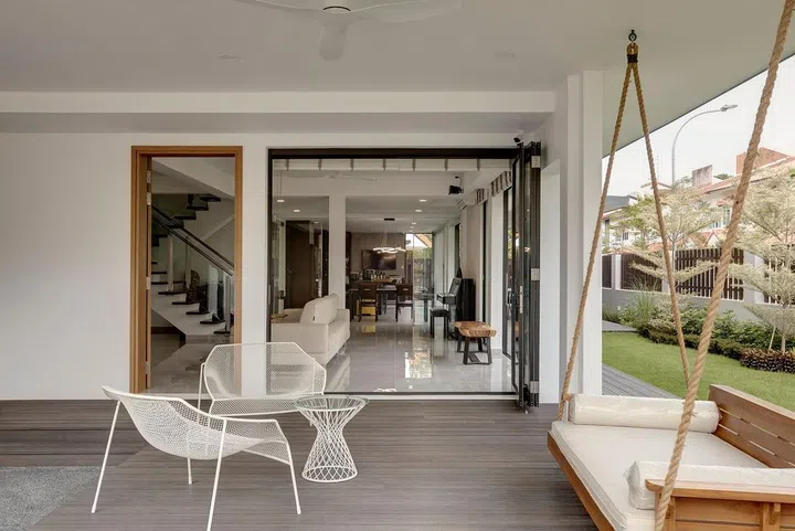 To create a lighter, elegant look, Ai Tiong used frameless glass to replace the dated timber balustrade.