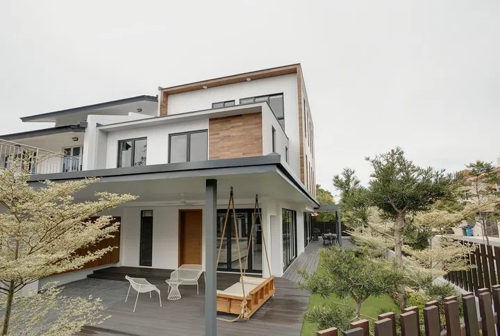 This two-storey semi-detached house at Tamarind Road was reconfigured for a family of four over a period of six months. Designed by Lim Ai Tiong of Lato Design, the house now features an additional attic and a whole new timber-styled exterior.
