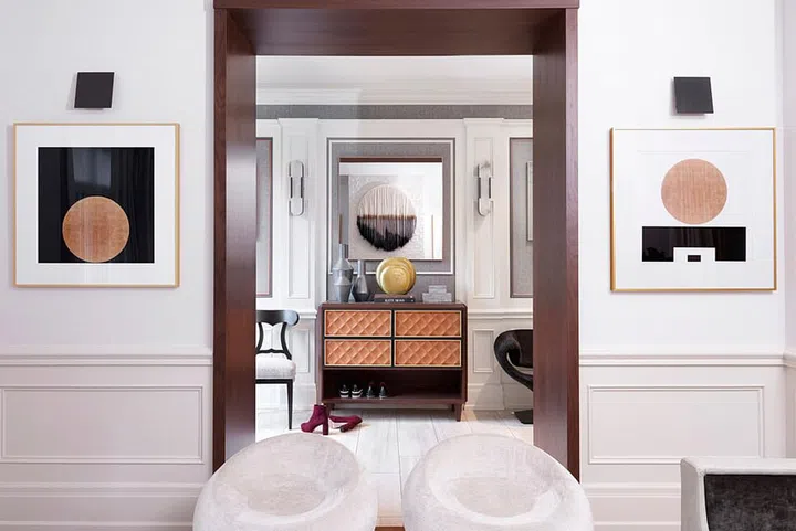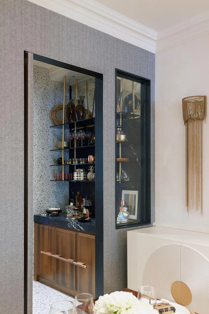 “I love seeing a space and envisioning how we can completely turn it around”, says Cohen. In the foyer, the interior designer and her team painted out the existing panelling and added walnut doorway arches as an architectural detail.