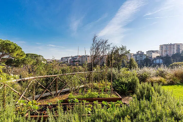 It has a built-up area of 6,092 sq ft (565 sqm) with a 6,588 sq ft (612 sqm) garden overlooking the Inviolatella Borghese Urban Park.
