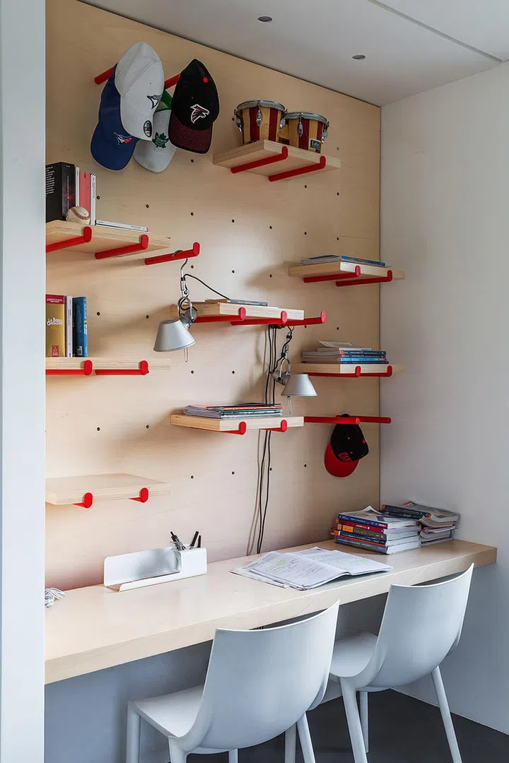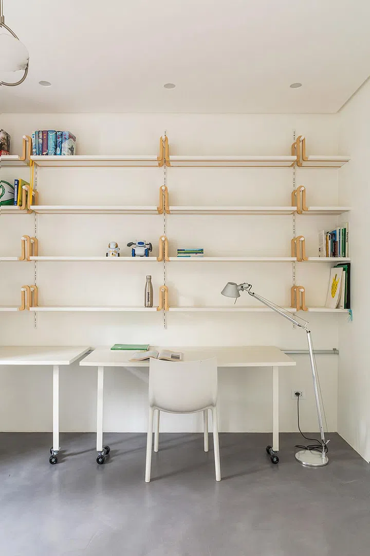 Each of the children’s bedrooms has a study area outfitted with flexible furniture such as shelves and study desks fitted with castors that can be easily adjusted and modified as they grow.